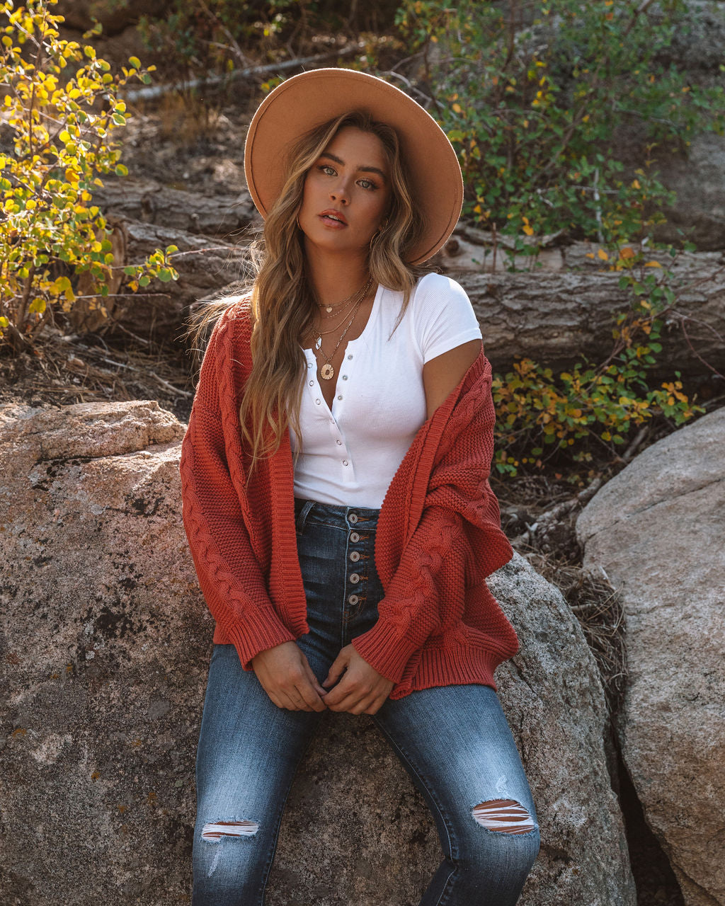 Paris Cotton Blend Pocketed Cardigan - Marsala