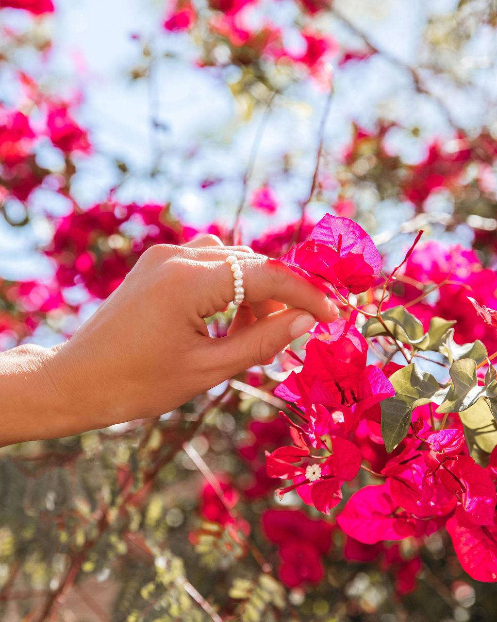 Add detail to your look in the Gold And Pearl Ring that's complete with an elastic band.