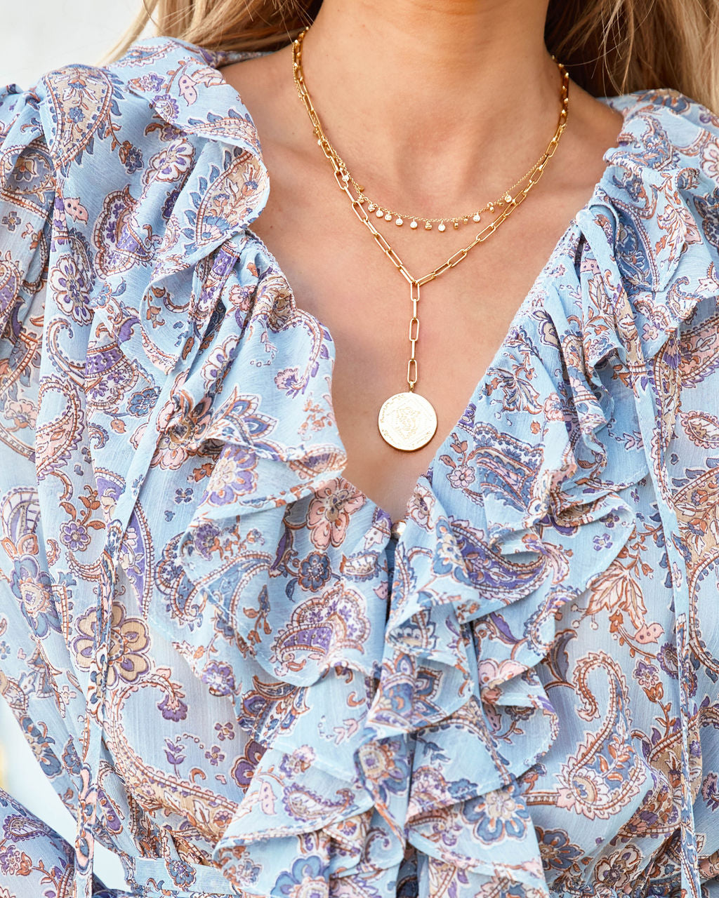 Laguna Paisley Chiffon Ruffle Romper - Blue