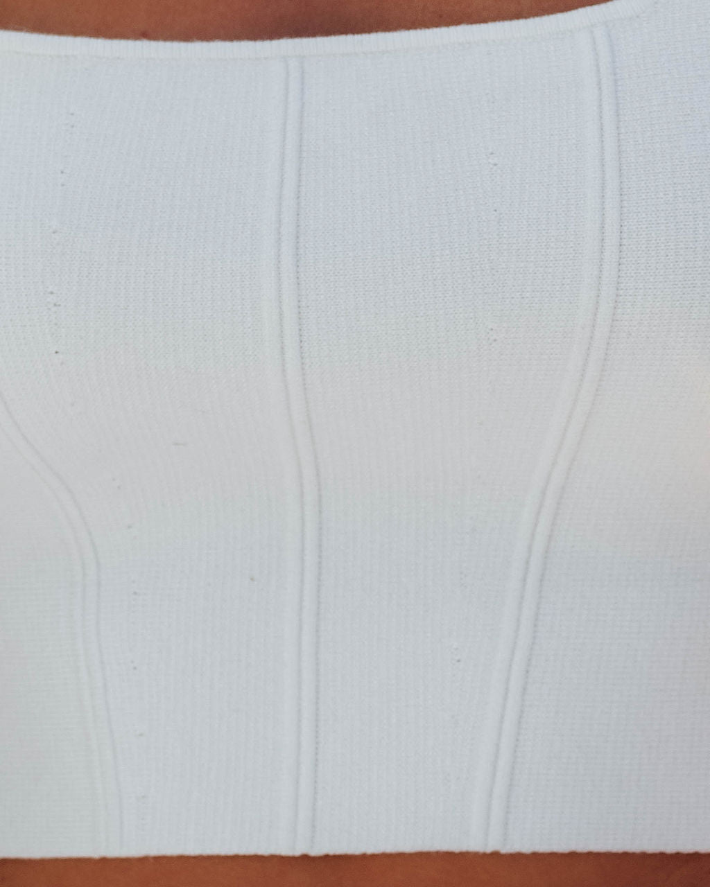 Refresh your crop top collection in our Lara Square Neck Knit Crop Top in ivory with fixed tank straps.