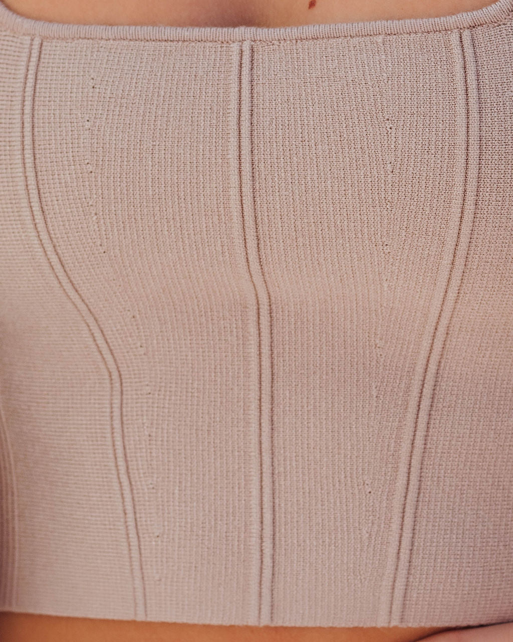 Refresh your crop top collection in our Lara Square Neck Knit Crop Top in khaki with fixed tank straps.