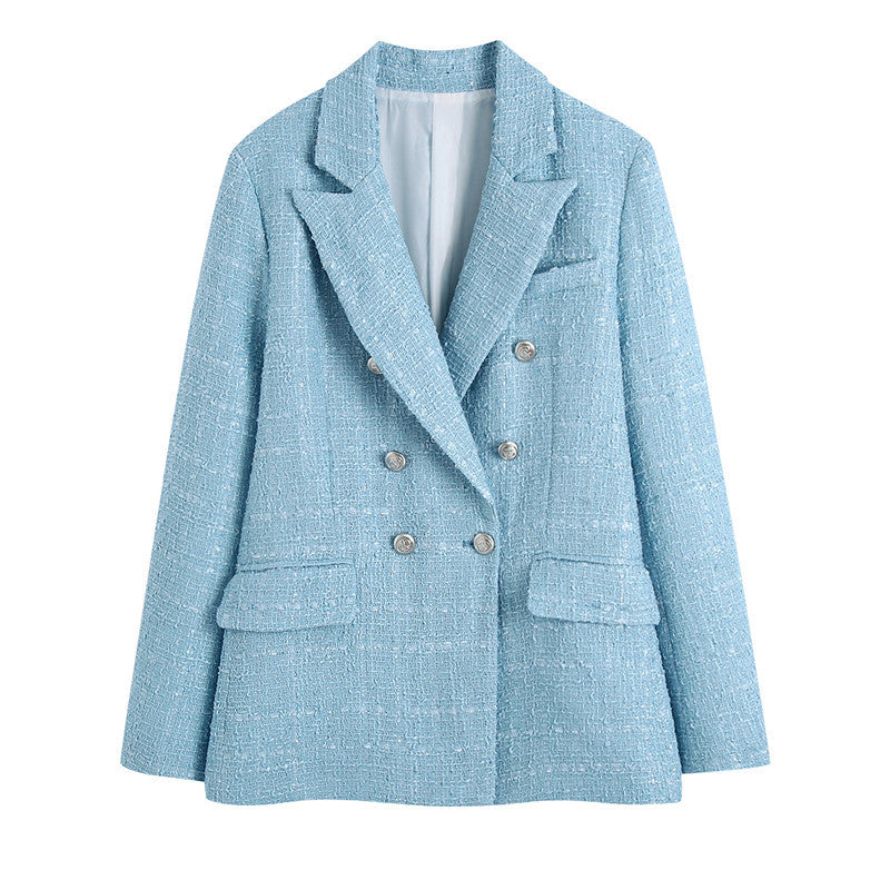 Styled with: Perfect Hoops. Beaming Heart Necklace. Physique Tank. Chic Bag. Limon Blazer. and Whimsy Heel.
