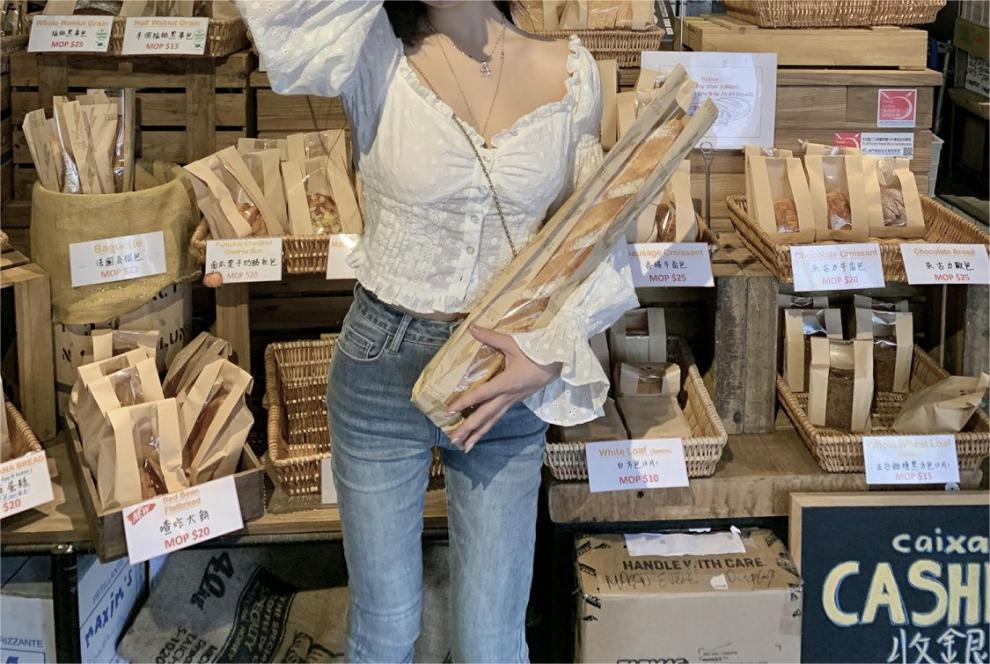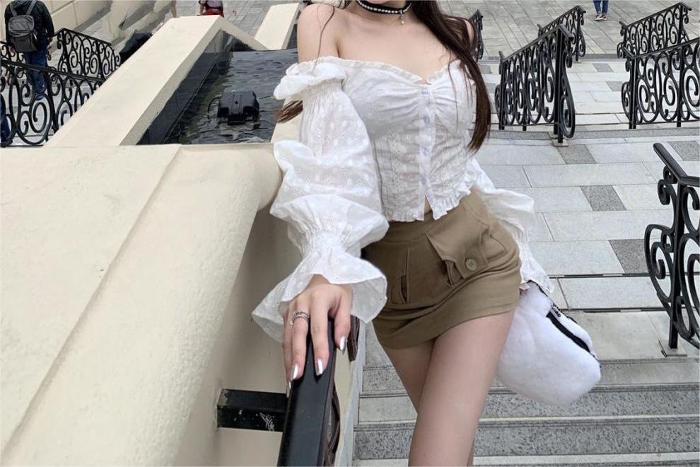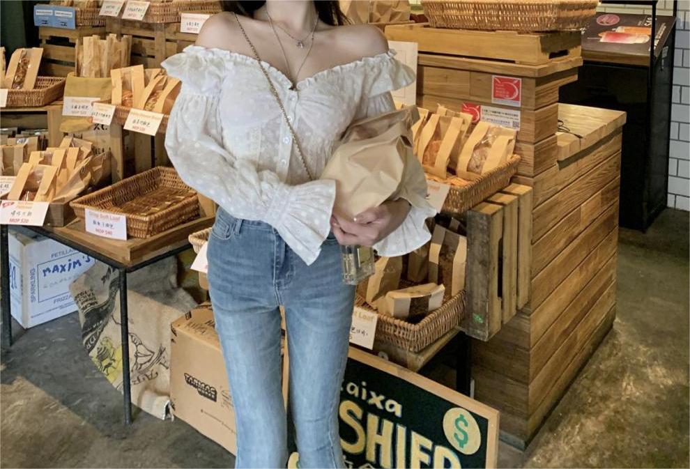 So lovely is the Lolly Cotton Eyelet Smocked Crop Top in off white with a square neckline and sleeves.