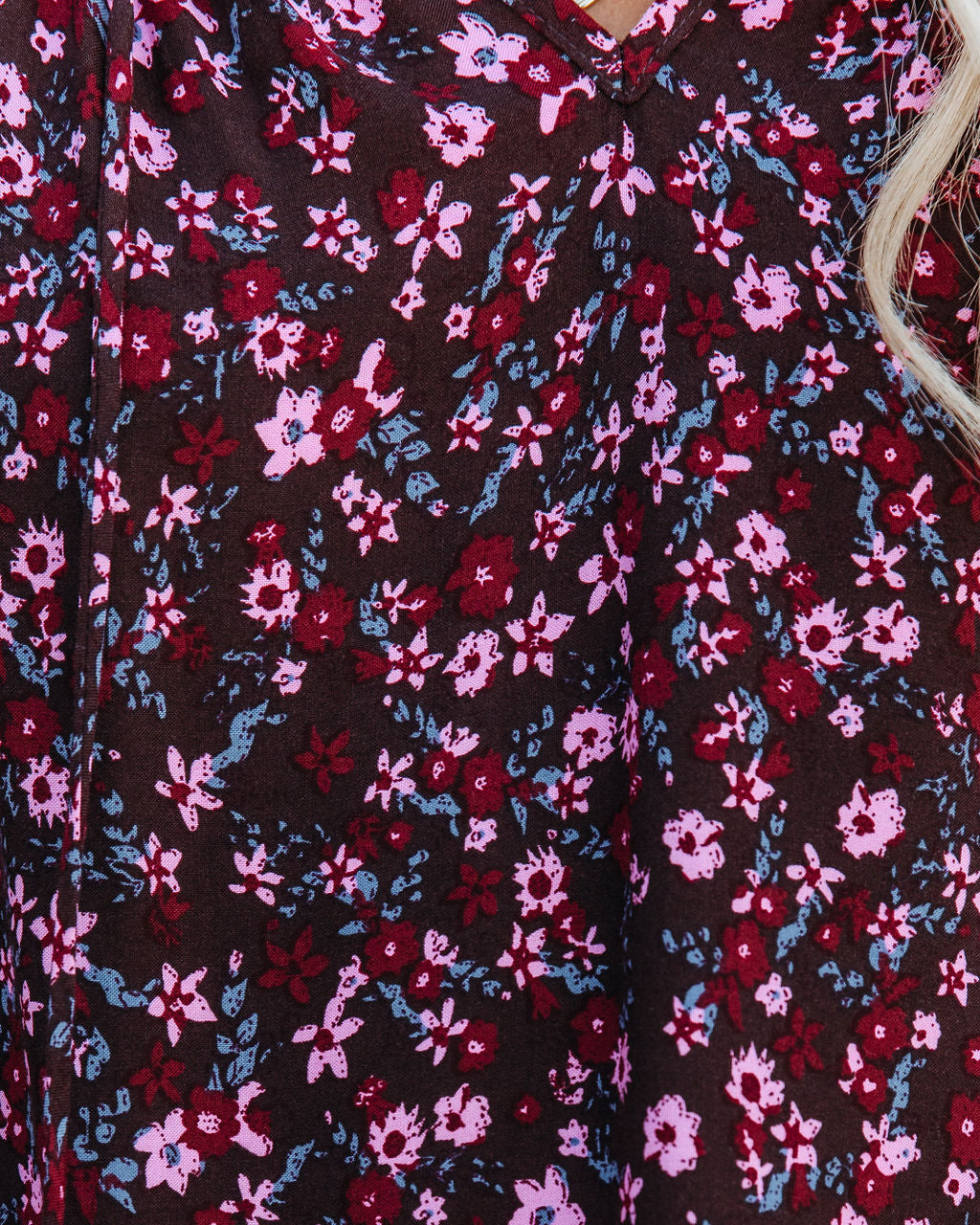 //Best Selling Print// Major boho vibes in our Maloney Printed Tassel Top! This chocolate. pink. wine. rust. and dusty blue printed top is perfect for fall. Designed with a split neckline and tassels. Styled with the El Dorado Hat. Vesta Huggie Hoops. 5 Disc Choker. The Buddha Wheel Necklace. Compass Coin Necklace. Simple Bangle Bracelet. Stella Crossbody Envelope Zip Clutch. Offset High Rise Distressed Flare Denim. and Formal Faux Suede Heel.