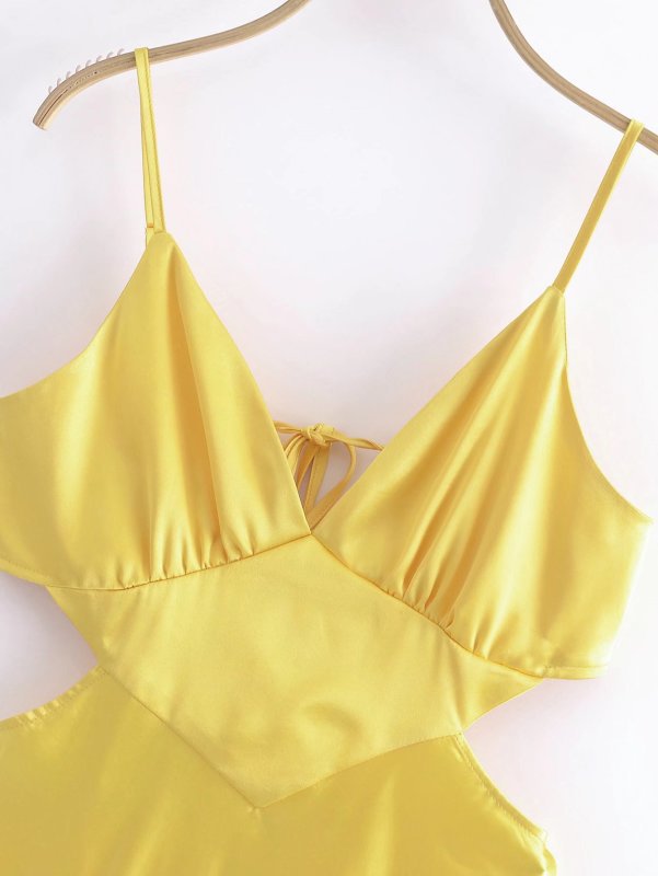 Look stunning at your next event in our Marielle Satin Plunge Maxi Dress! This mustard satin maxi features a plunging neckline and a back zipper closure. This gorgeous dress is fully lined. Styled with the Amal Gem Drop Earrings. 5 Disc Choker. The Buddha Wheel Necklace. Chic Crossbody Chain Pouch Bag. and Whimsy Heel.