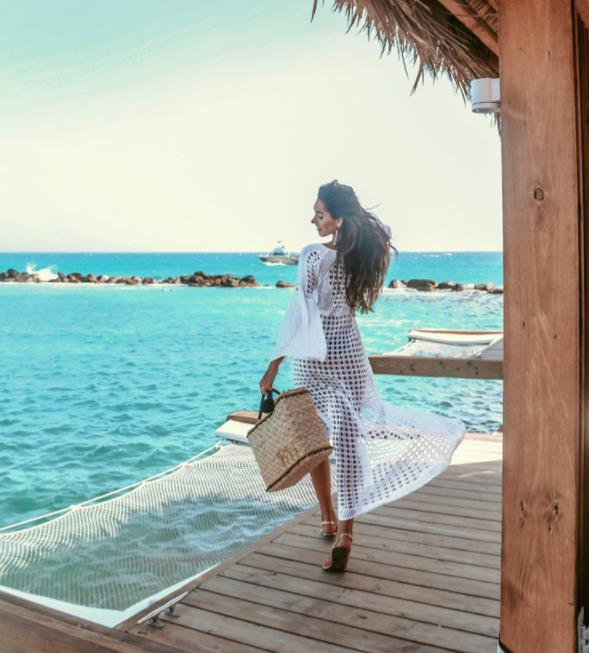 //InsStreet Exclusive// Look heavenly in the Maryan Cotton Sheer Crochet Maxi Dress in white that's detailed with a wide neckline.