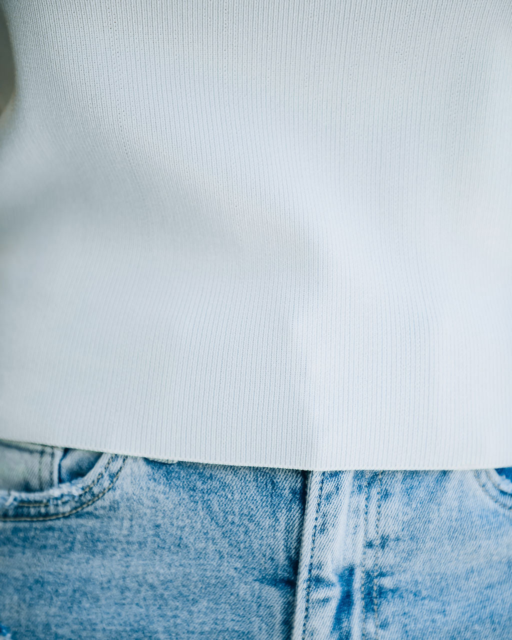 //InsStreet Exclusive// Cascading ruffles make this white top stand out! Our Maven Crop Ruffle Knit Tank features a scooped neckline and a relaxed style. Pair this top with light wash denim shorts. Styled with the Wellness Layered Pendant Necklace. Compass Coin Necklace. Moxie Simple Chain Necklace. Simple Bangle Bracelet. Chic Crossbody Chain Pouch Bag. Erika High Rise Distressed Mom Jeans. and Wishful Patent Leather Pumps.