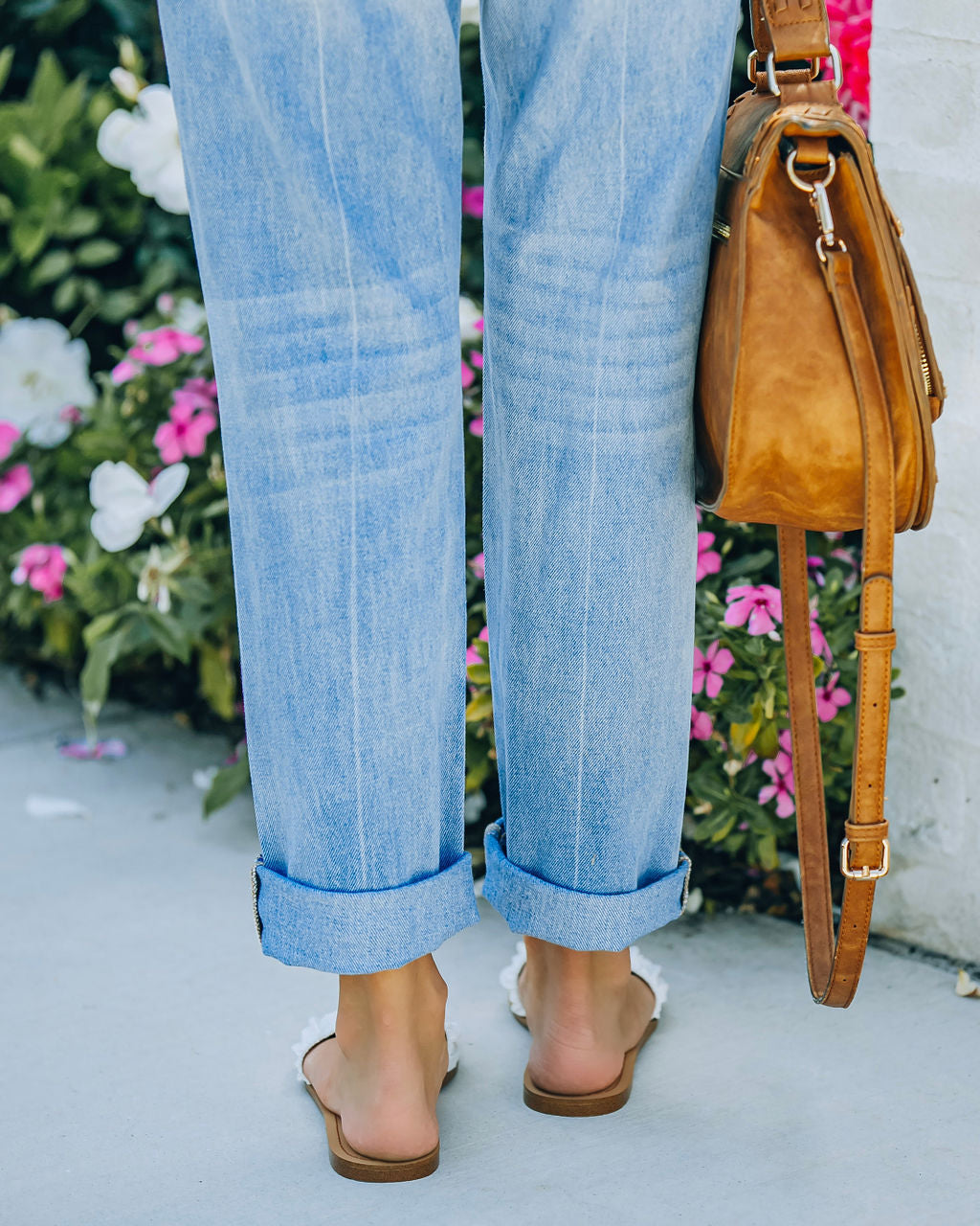 Our Mila Ruched Square Toe Sandal will take you right from spring to summer! These white sandals have a .25 inch heel. The ruched faux leather uppers look so chic with a square toe. Styled with the Simple Bangle Bracelet. Highland Bag and Wander High Rise Distressed Boyfriend Denim.