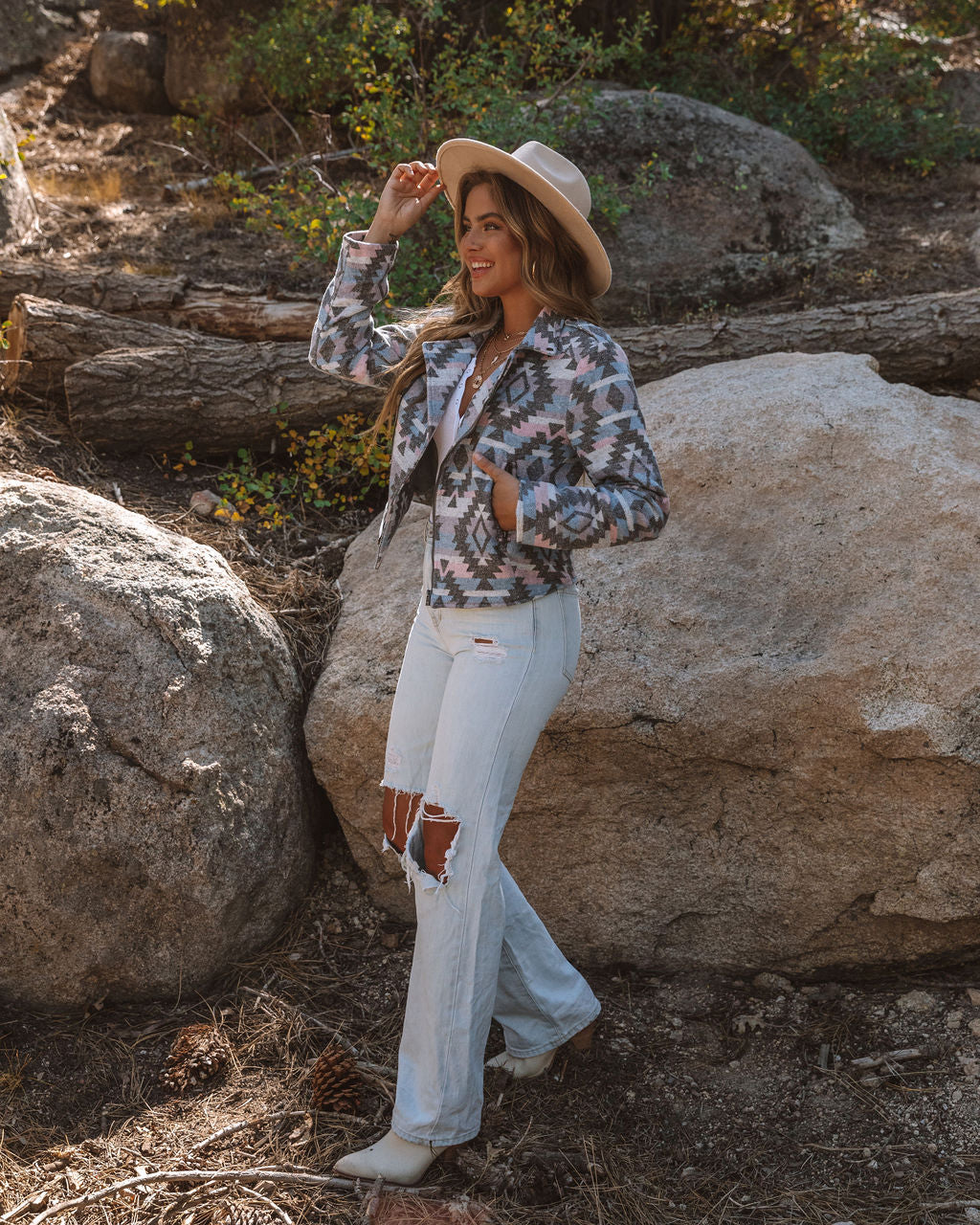 Add a cool outerwear piece to your fall wardrobe! Our Norinne Pocketed Woven Moto Jacket features blue. charcoal. lavender. blush. and white hues. Designed with side pockets and a front zipper closure. Styled with the Rocky Mountain Hat. Zoey Hoops. Coasta Layered Pendant Necklace. Highland Bag. Janine Ribbed Henley Bodysuit. London High Rise 90's Flare Denim. and Finley Faux Leather Bootie.