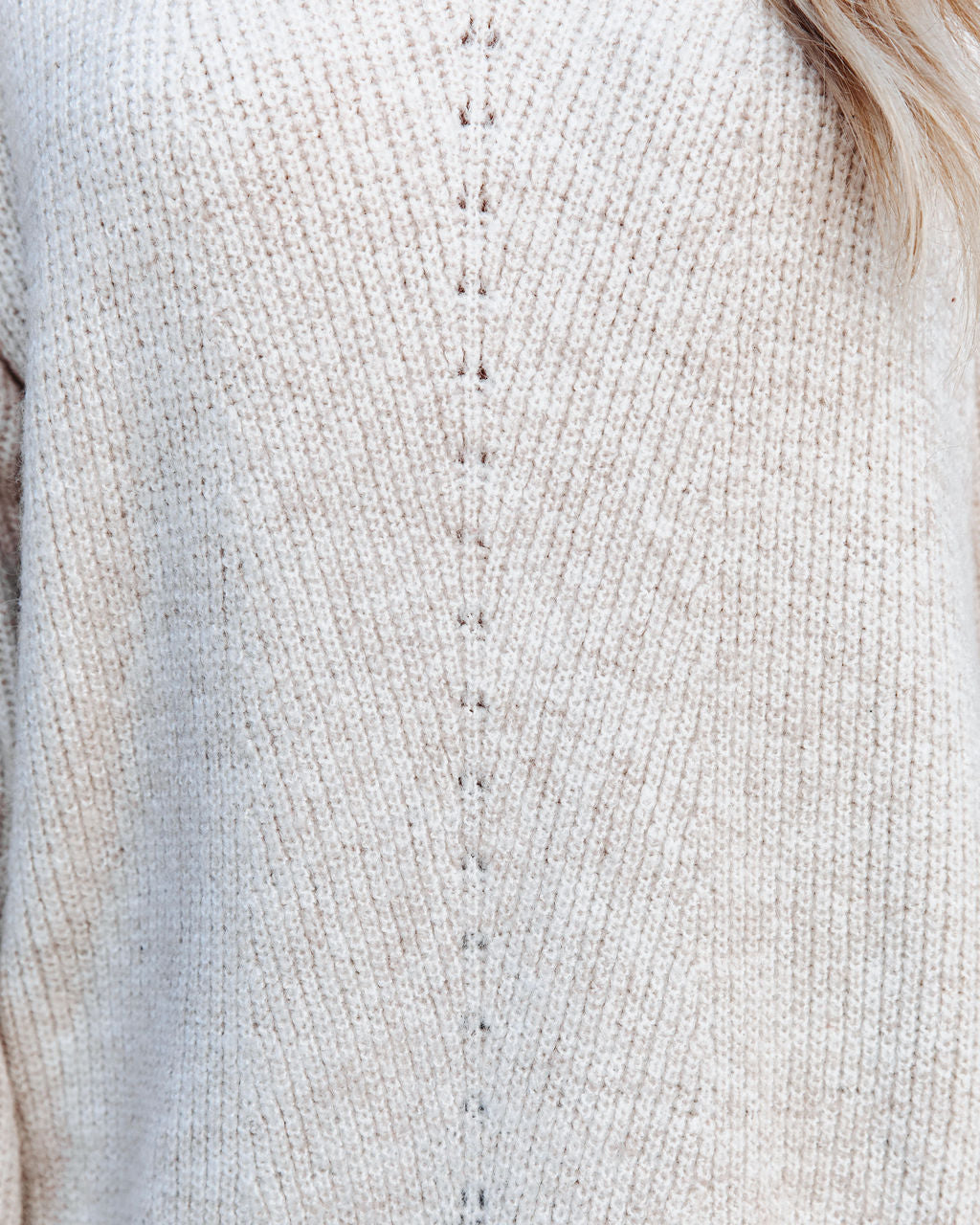 Look sweet and simple in our Nysha Mock Neck Knit Sweater! This beige colored sweater features a mock neckline. Designed with side slits and long sleeves. Tuck this top into dark wash denim. Styled with the Elf Pom Beanie. Ginny High Rise Distressed Skinny. and Nordic Faux Fur Trim Boot.