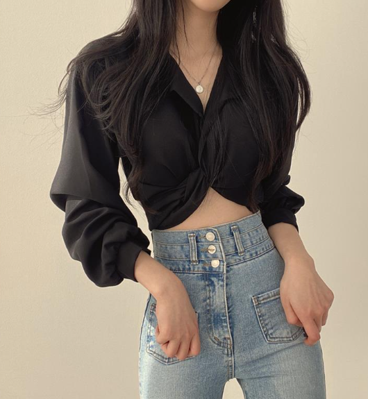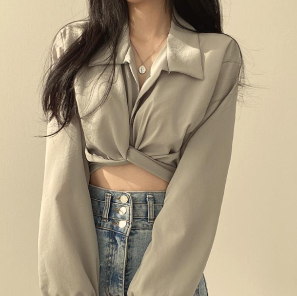 //InsStreet Exclusive//Best Seller// New Color// Our Vittoria Tie Front Crop Blouse is ultra sexy with its deep plunging neckline! This classic grey top has a tie front and a cropped fit. We love how comfortable the crepey fabrication is. Made in the USA. Styled with the Perfect Hoop Earrings. Chloe Mini Necklace. Elena Pendant Necklace. Compass Coin Necklace. Simple Bangle Bracelet. Kiara Chain Handbag. Mcguire High Rise Distressed Denim. and Ritz Faux Suede Pointed Heel.