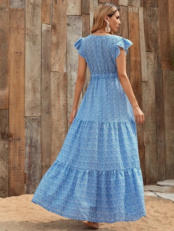 //InsStreet Exclusive// Our Watertown Floral Tie Back Midi Dress is made for wine tasting! This sky blue. white. and peach floral dress is a midi style with a fit and flare silhouette. Just add espadrille sandals! Styled with the Rocky Mountain Hat. Perfect Hoop Earrings. Mica Chain Choker Necklace. Initial Card Necklace. and Simple Bangle Bracelet.